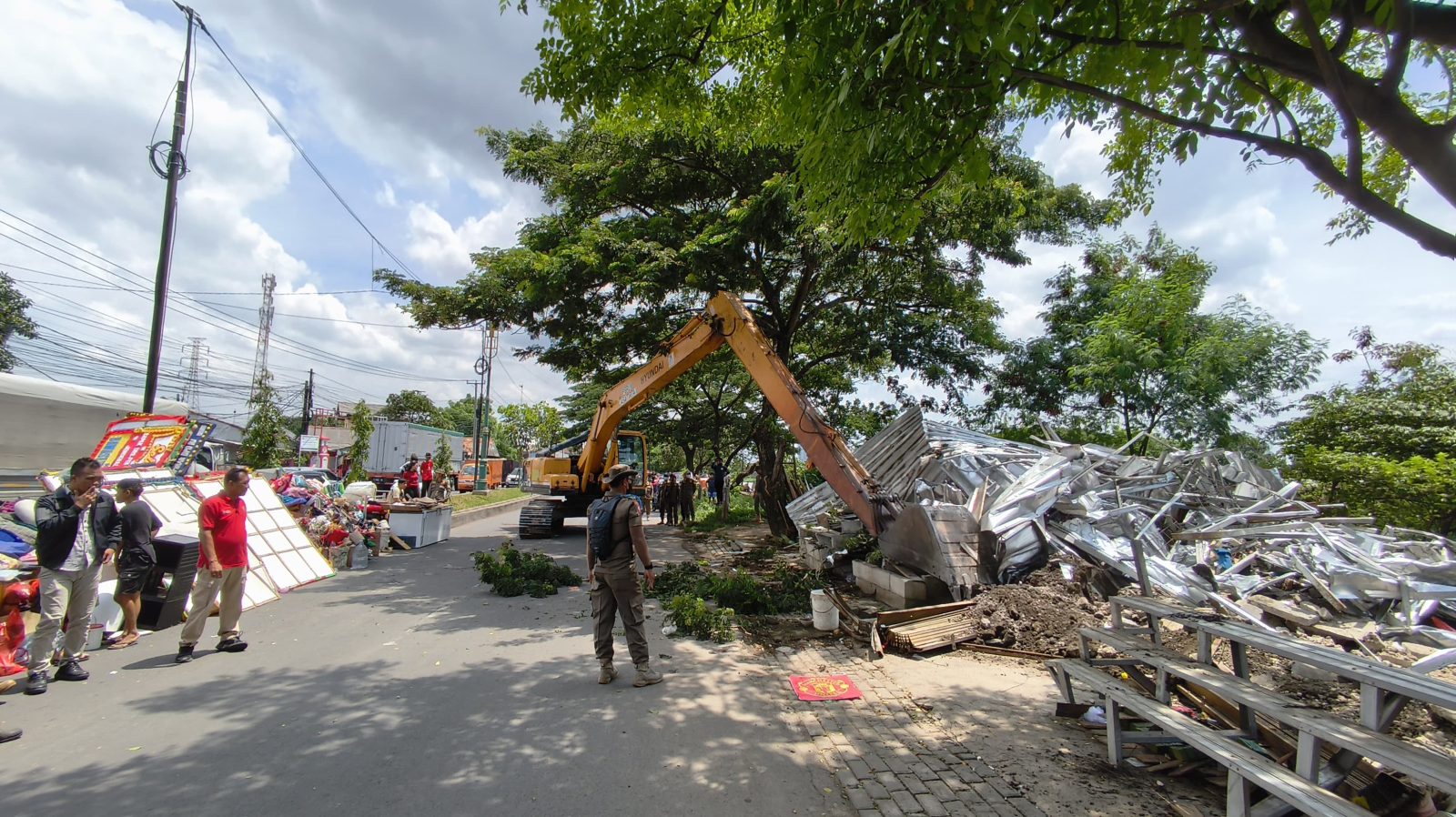 Dalam pembongkaran, Satpol PP selain dibantu anggota Polri, TNI, juga menghadirkan anggota Dinas Perhubungan, PLN, Perum Jasa Tirta, Dinas Bina Marga, serta pemerintah kecamatan Cikarang Selatan dan Cikarang Pusat.