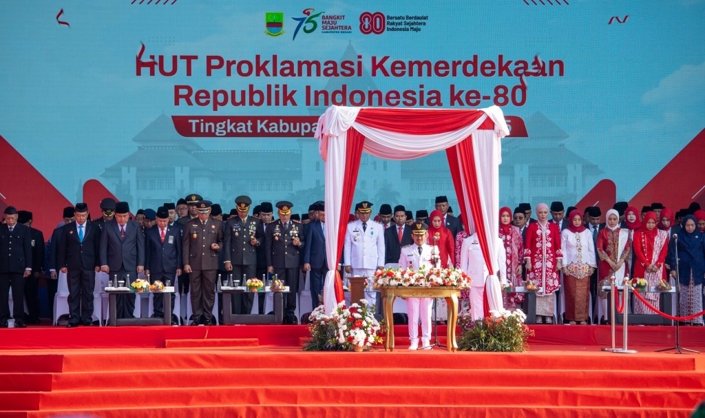 Upacara penurunan bendera Merah Putih pada HUT ke-80 Kemerdekaan RI dipimpin Wakil Bupati Bekasi Asep Surya Atmaja. Ia mengucapkan rasa syukur atas perjalanan bangsa dan negara hingga saat ini, yang diraih dengan perjuangan. “Sore ini, kita bersama-sama menyaksikan penurunan bendera Merah Putih. Momentum ini menjadi pengingat bahwa kemerdekaan yang diraih, harus diisi dengan kerja nyata, […]
